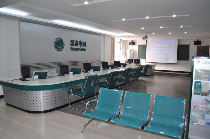 模拟营业大厅实训室依据公司2008年供电营业场所应用系统规范的要求,于2008年10月建成,占地面积99.36 平方米,分为培训师工作区、营业区、客户接待区三部分,装有SG186营销业务应用系统和95598座席系统,可进行20人左右的轮换培训。